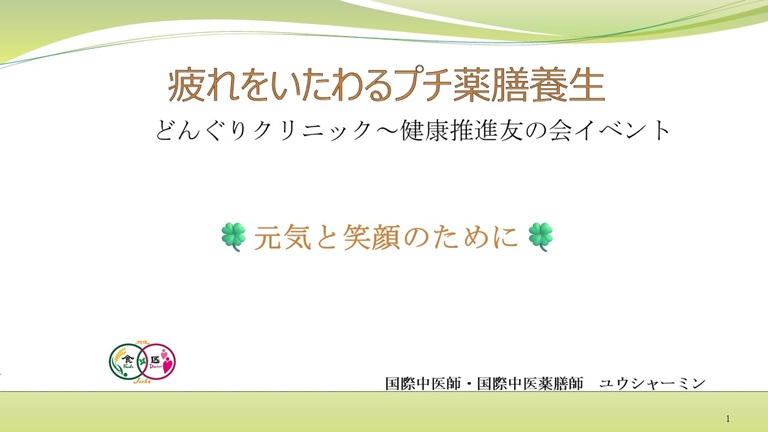 わたくしは「疲れをいたわるプチ薬膳養生」をお話させて頂きした。