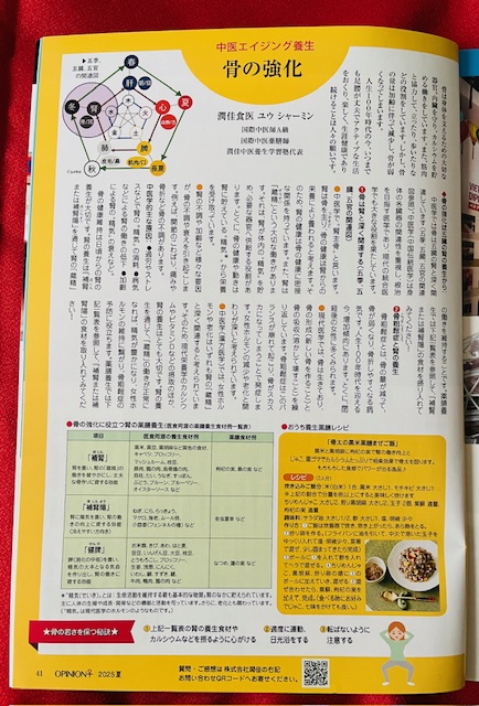「中医エイジング養生~骨の強化」のコラムが オピニオンプラス季刊誌の夏号で掲載されました。