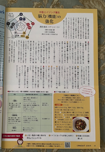 「中医エイジング養生~脳力(機能)の強化」のコラムが オピニオンプラス季刊誌の冬号で掲載されました。